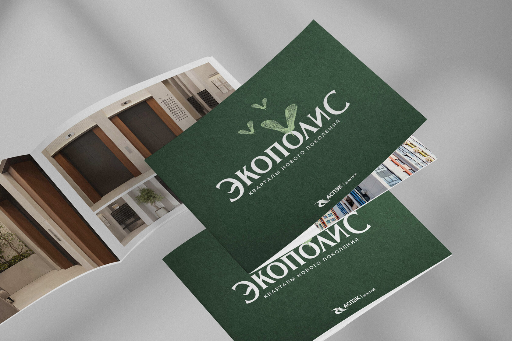 Экополис — это современный жилой комлекс со своей инфраструктурой. Он находится недалеко от центра, но при этом окружен природой. Это мы и старались отразить при создании стиля.
