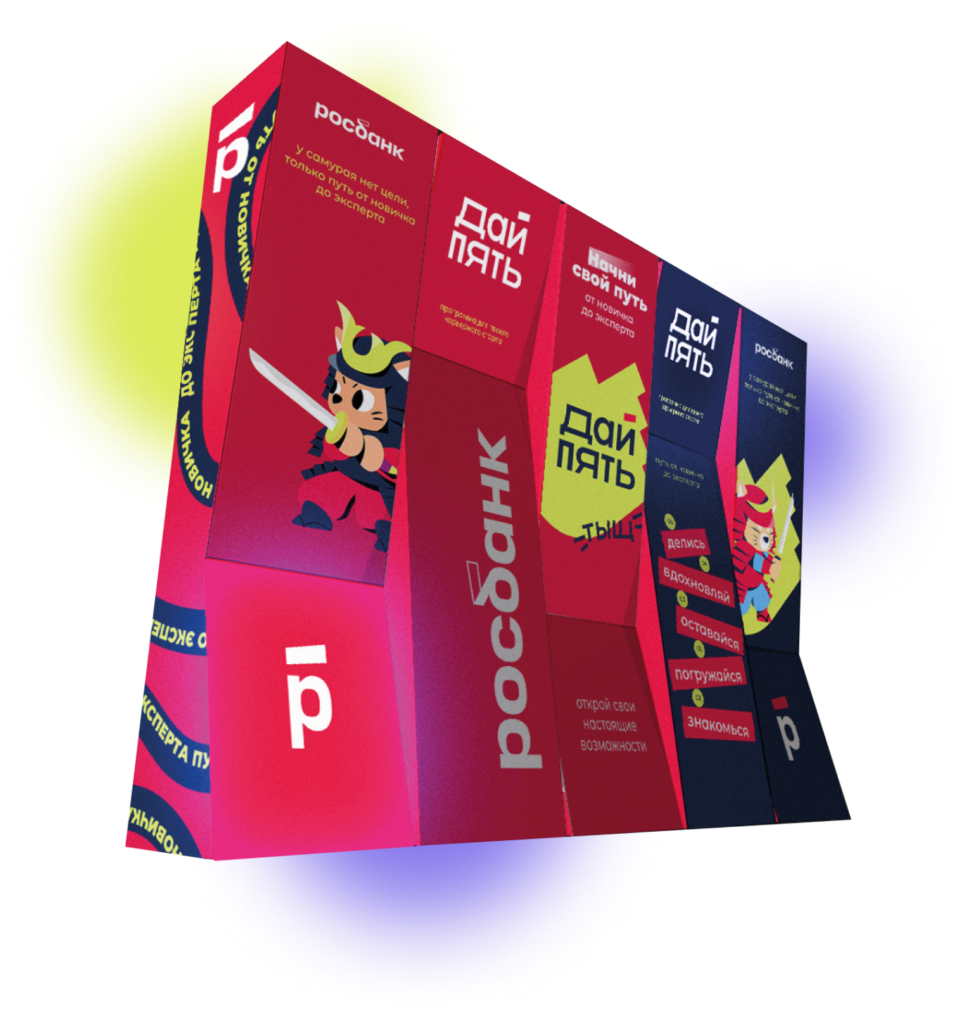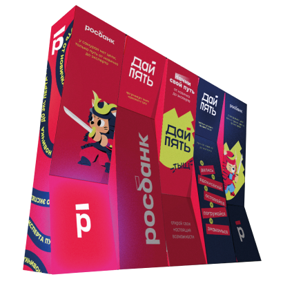 В рамках работы над этими стендами, мы разработали пул сувенирной продукции для IT-команды Росбанка